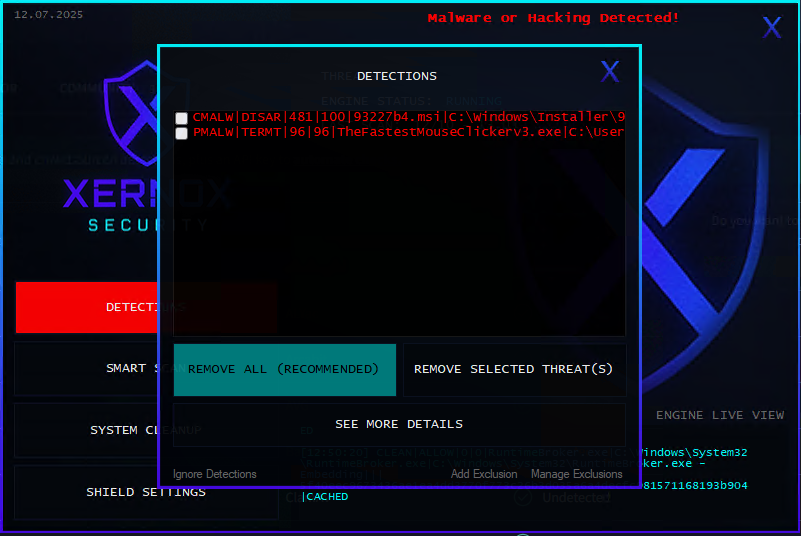 This detection was achieved without signatures, cloud reputation, or prior intelligence — relying solely on XERNOX SHIELD’s behavior‑first detection engine.