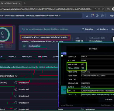 Bundled inside a GitHub auto‑clicker installer. The malware managed to evade detection for years. With zero detections in platforms such as VirusTotal (At the time of writing).